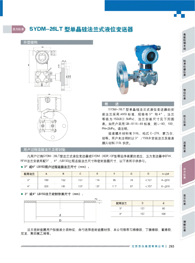 SYDM-26LT型單晶矽法蘭式(shì)液位變送器(qì) 價格(gé):