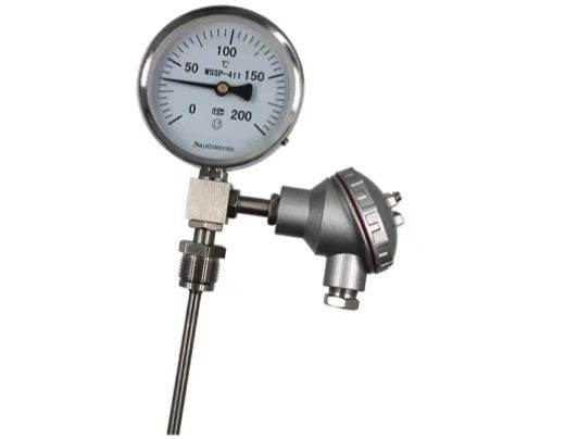 W S S帶熱(rè)電偶(阻)溫度變送器的雙金屬溫度(dù)計是現場(chǎng)就地顯示和遠傳電信號的溫度傳感器。它既可(kě)以現場指示(shì)溫度又可傳送熱電偶(阻)和二線製溫度(dù)變送器信號,作為新一(yī)代的溫度計,可(kě)廣泛用於(yú)冶金、石化、電力、輕(qīng)紡、食(shí)品、國防等工業部門。