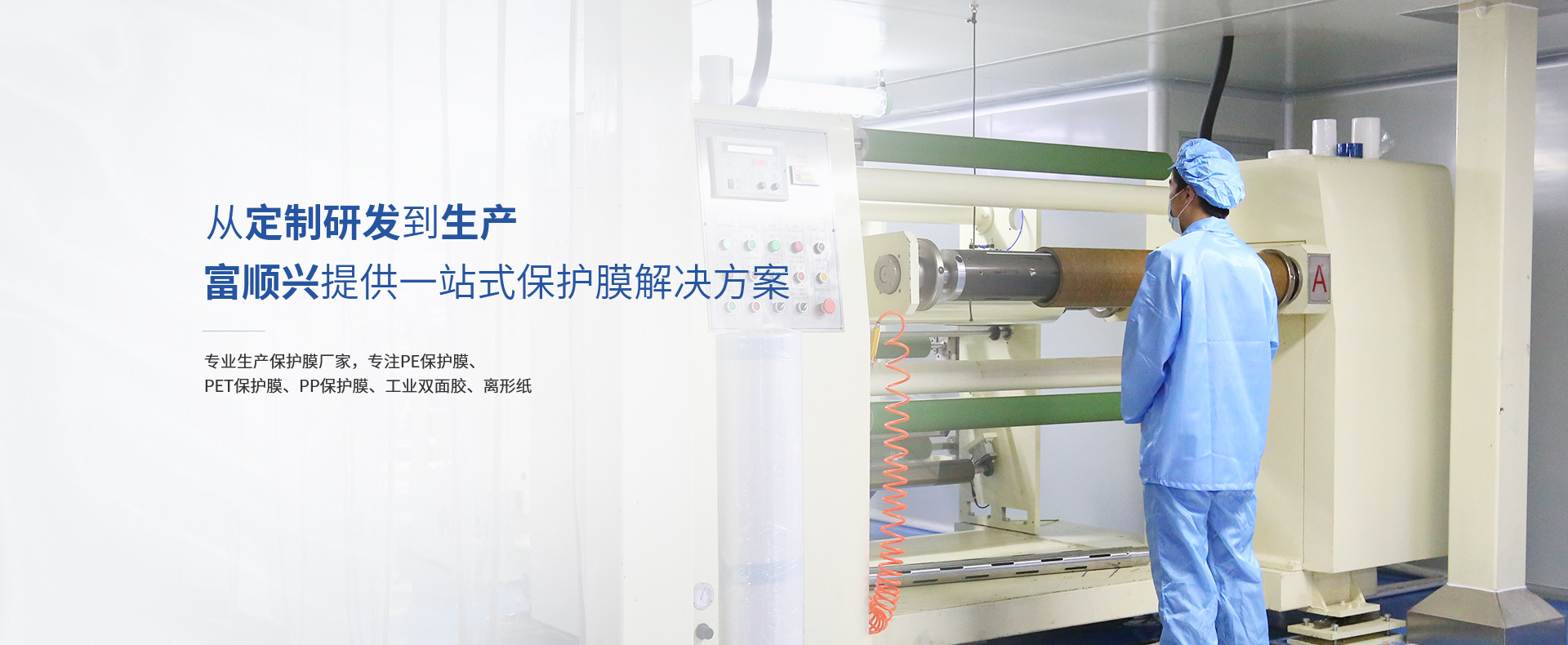 深圳市富順(shùn)興科技有限公司成立於2000年,專業生產保護膜廠家,專注PE保護膜、PET保護膜、PP保護膜、工業(yè)雙麵膠(jiāo)、離形紙等產(chǎn)品(pǐn),廣泛應用於電(diàn)子(zǐ)產品及lcd液晶顯示(shì)器(qì)保(bǎo)護、模切保護、塑塑膠材質保護、金屬材質保護等(děng)領域。